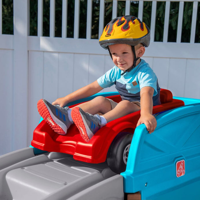 - Wide Step Ramp: The wide step ramp makes it easy for children to push the car back up the ramp on their own.