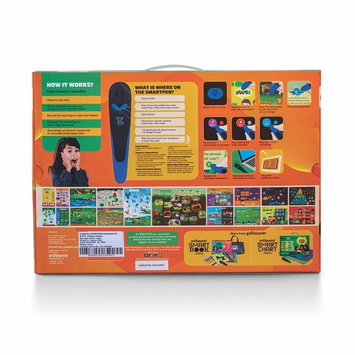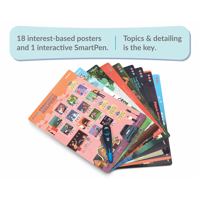 In The Box : 18 Interactive Laminated Learning Posters, 1 Interactive Pen, 1 Charging Cum Data Trasnfer Cable