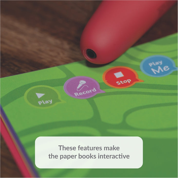 In The Box : 9 Interactive Books, 42 Re-Recordable Stickers, 1 Interactive Pen, 1 Charging Cum Data Trasnfer Cable