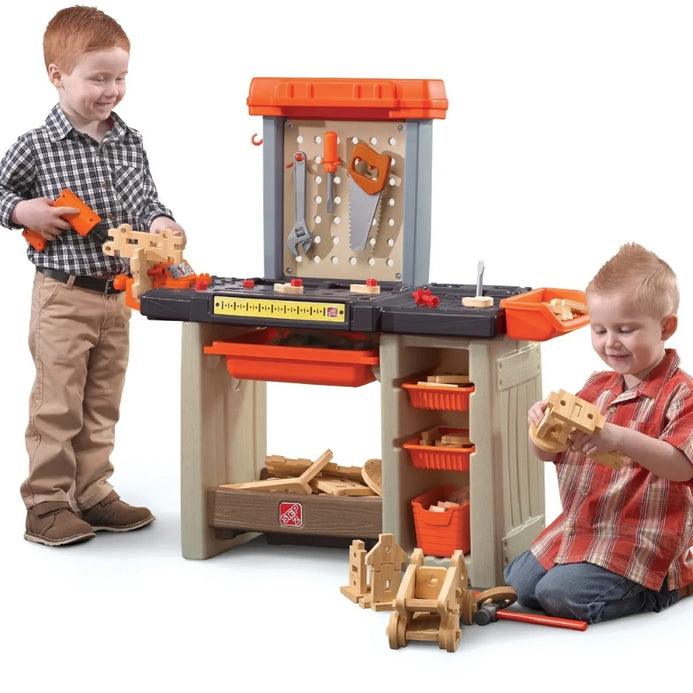 The Handyman Workbench by Step2 is the perfect workshop for a little handy boy or girl! It helps develop fine motors skills as children play with the drill, saw and hammer, plus it will keep little imaginations busy for hours! Made in the USA of US and imported parts.