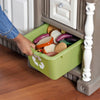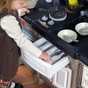 • Ample storage space includes multiple cabinets, sectioned silverware drawer, 2 pull-out bins, and dish rack.