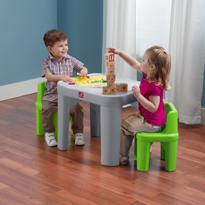 - Simply wipe the plastic surfaces down after playtime fun is done, and this kids’ table and chair set will last for years to come!