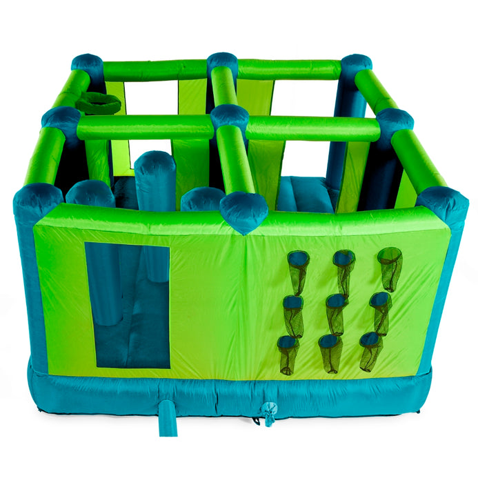 - Children can play ball with the basketball hoop or dodge the obstacles and inflatable pillars.