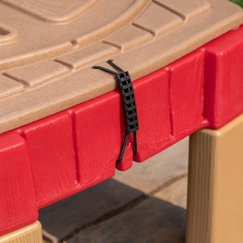 - Lid with elastic tie-downs protects sand from potential critters, and the molded roadways provide an additional play surface while covered.