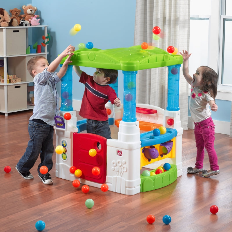 - Activate fun plinking sounds as the play balls travel from the roof down the tubes, or down the ramps inside the playhouse.