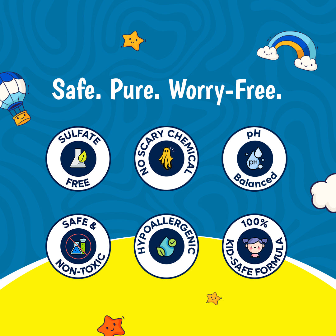 - Shampoo : A mild, coconut-based cleanser that creates soft, safe bubbles without harsh chemicals.