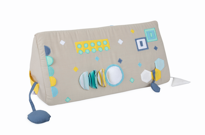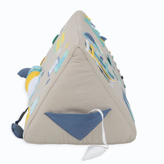 Crafted to stimulate your little one's senses, this enchanting toy boasts a symphony of features, including a squeaker, crinkle paper, mirror, and rattle, encouraging interactive play and exploration. Designed with joyous decorative shapes in gender-neutral colors, this Tummy Time Toy effortlessly complements any nursery aesthetic. It's not just a plaything; it's a visual delight that sparks creativity and captivates young minds. The tummy time wedge, filled with brand-new 100% polyester foam and hypoallergenic polyester fiber wadding, provides a comfortable and supportive space for your baby's developmental activities. Suitable from birth, this thoughtful creation is a testament to both safety and quality craftsmanship, proudly made in India. For a complete sensory experience, seamlessly coordinate our Neo Geometric Tummy Time Toy with the Neo Geometric Play Mat and Baby Activity Center. Elevate your nursery to a haven of exploration, where each playtime moment is filled with joy, comfort, and developmental growth. Invest in the best for your little one's early years – our Neo Geometric collection is designed to inspire, entertain, and nurture your baby's curiosity.