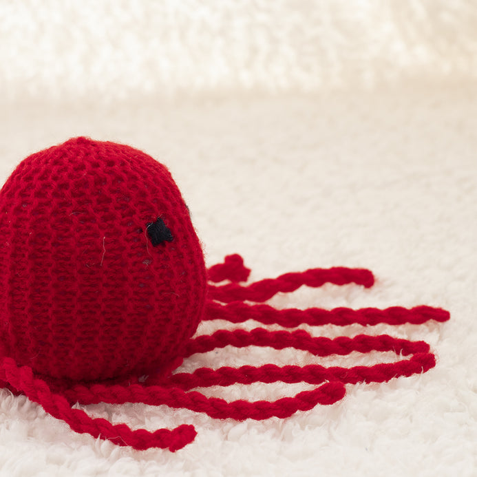 - SIZE & MAKE- One adorable soft toy, hand-knitted from premium baby wool, Integrated rattle sounds. 19 cm length (approx.) Handmade with care in India.