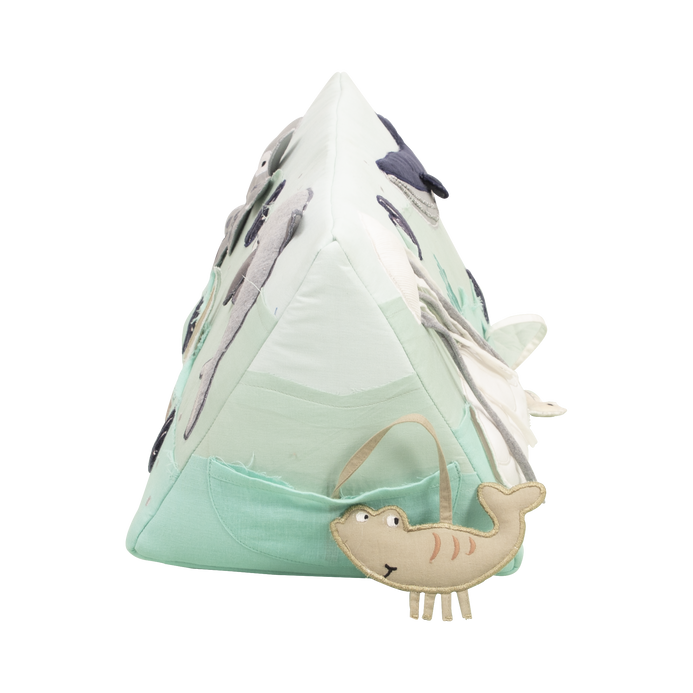 Discover the excitement of the ocean with its crinkly octopus legs, hidden lobster, and an oyster equipped with a mirror for extra fascination. The rattling fish and squeaky stingray add an auditory element to the adventure.