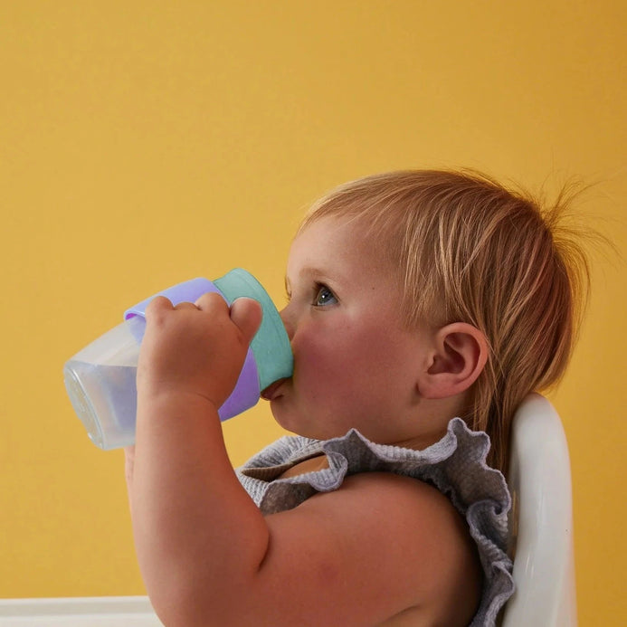 Wide profile handles are easy for little hands to grip for self-led drinking, and offer two-mode function for use at home and on-the-go. Twist handles down to expose the silicone rim for easy drinking, then twist handles up to lock and seal for no leaks in bags or prams, plus the silicone rim stays clean and hygienic.