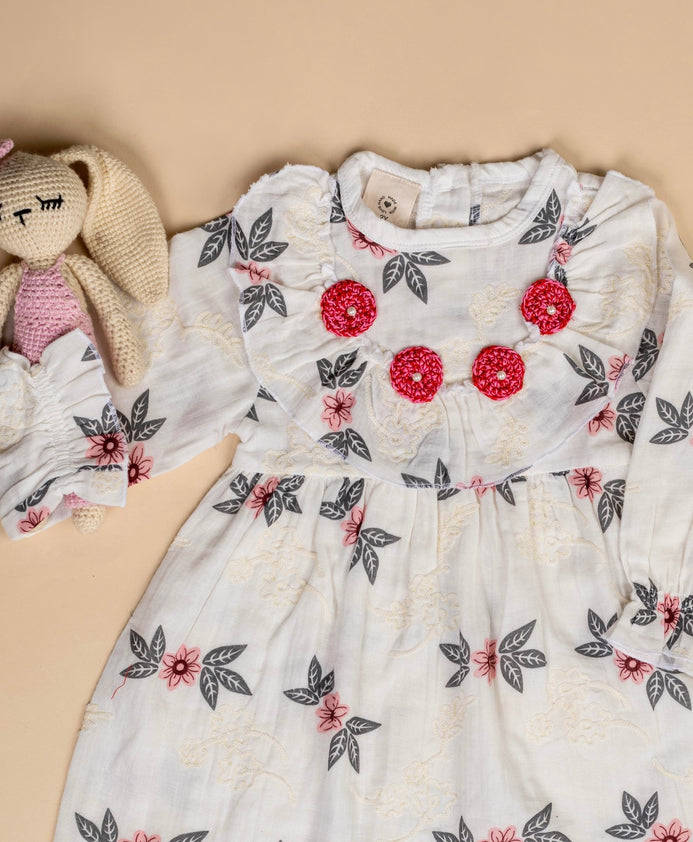 Made with organic cotton muslin, our dresses are designed to let your little lady twist and twirl. With the most beautiful embroidery, this dress combines style with comfort, This is a perfect dress for magical playtimes and fairy tale parties. Safer for their skin and helping protect the world.