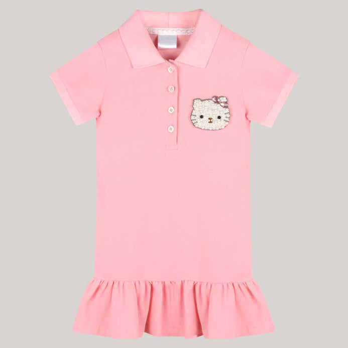 Polo Dress With Ruffles At Hem And Hello Kitty Motif