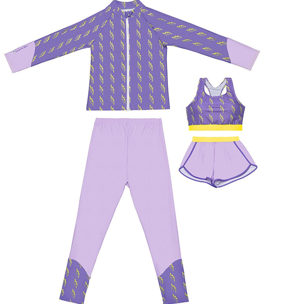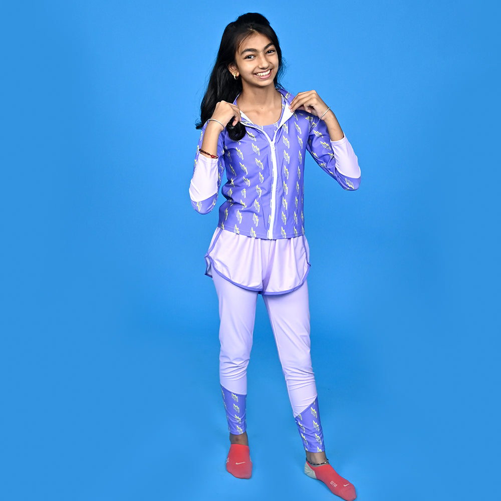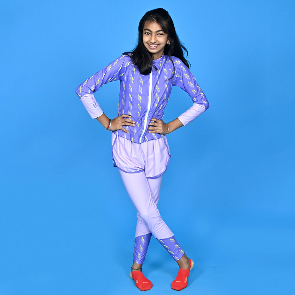 - 3 Pcs Set : This Swimwear is an attractive 3 pcs set of a sporty bralette with a matching leggings which needs to be worne over with shorts and a matching Sporty style Jacket.