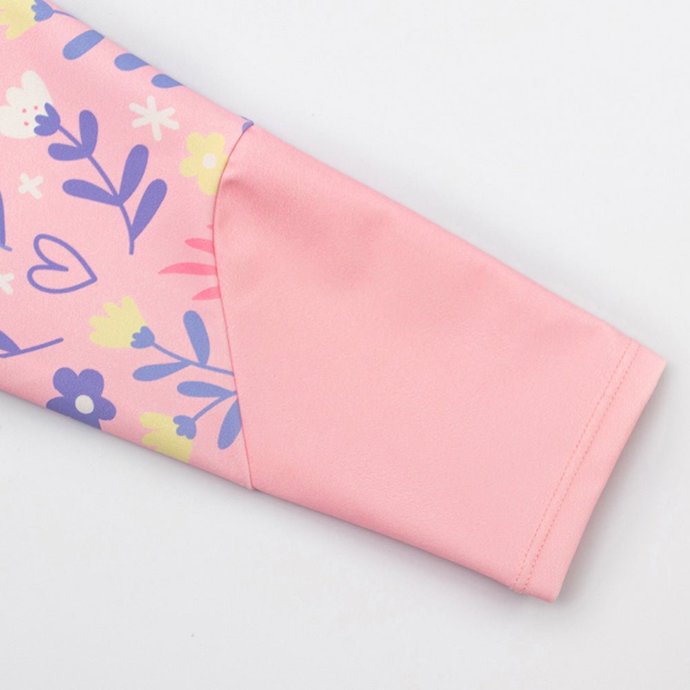 3 Pcs Pink Flower Power Matching Top, Leggings & Jacket Style Swimwear Set