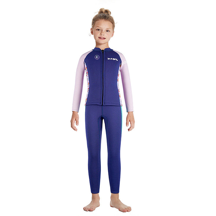 Dive 2-Piece Navy & Purple Front-Zip Jacket with Full Length Pants, 2.5mm Neoprene Kids Swimsuit with Free Washbag