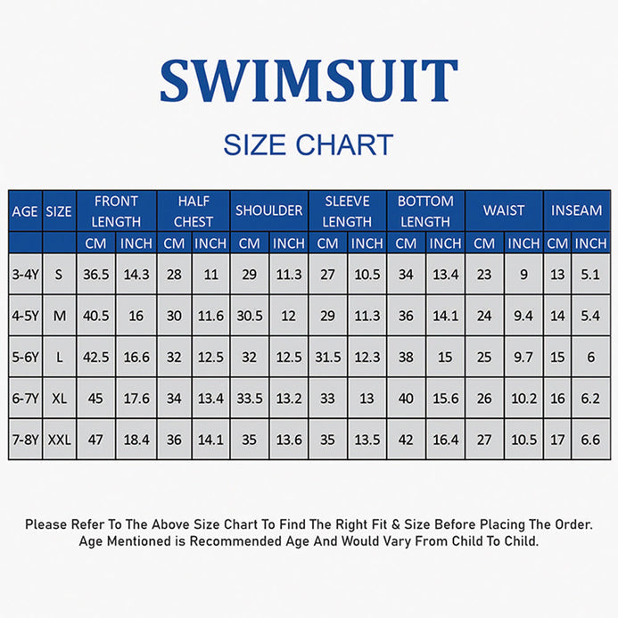 3. Two-Piece Set: It includes a full-sleeve front-zip jacket and knee-length shorts. The jacket is easy to put on and take off with its convenient front-opening zipper design. The shorts feature an adjustable drawstring at the waist for a secure and comfortable fit. The set is lightweight and allows your child to play in the water comfortably and confidently.