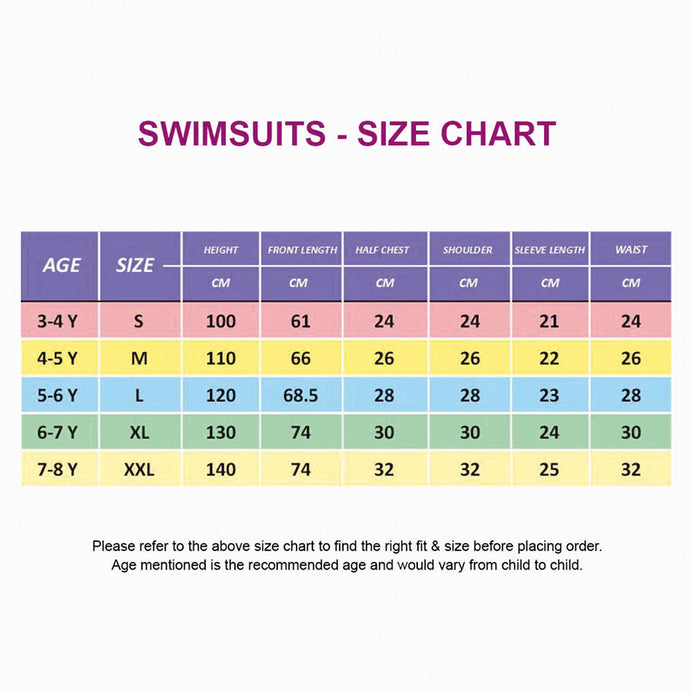 4. Fit Type: The swimsuit is comfortable and high-stretch, full-sleeve, knee-length style swimwear that provides complete comfort while swimming. This piece has a back zipper, thereby providing a smooth surface on the front for the child.