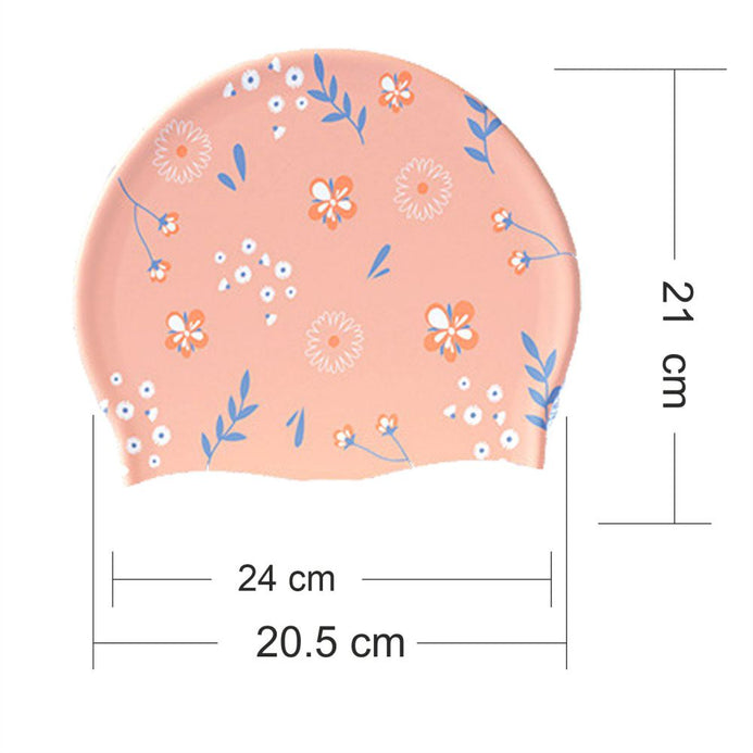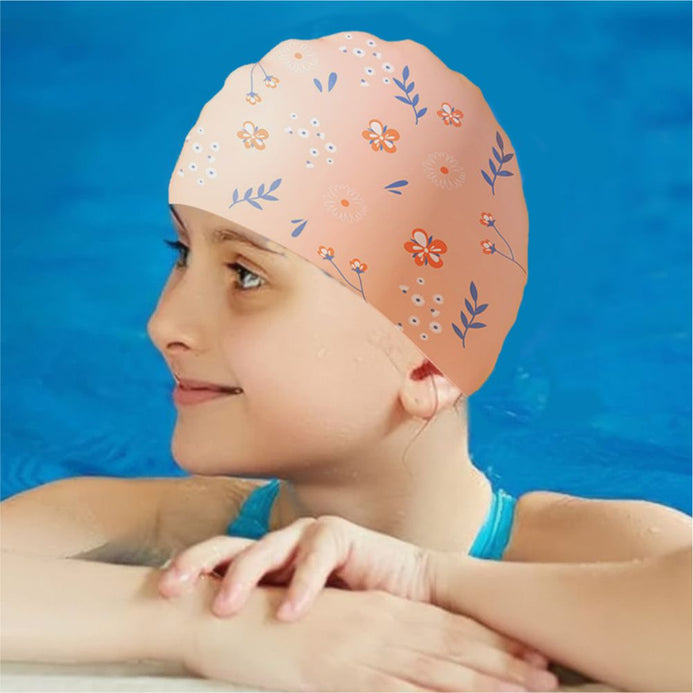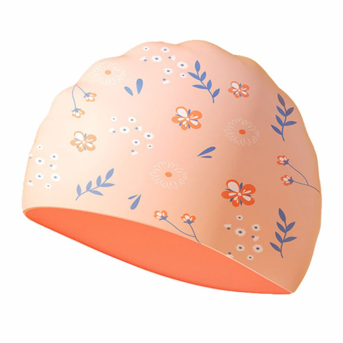 Peach Small Flower Print Swimming Cap