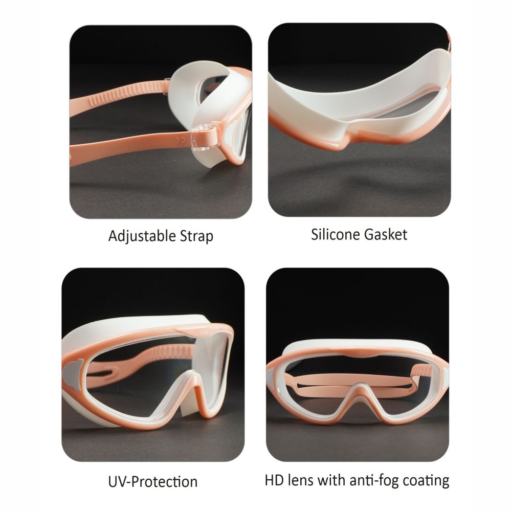 1. Anti Fog Advanced Technology: Enjoy crystal clear vision underwater with our advanced Anti Fog coating with a specialised wide Lens giving an uninterrupted experience of swimming under water.