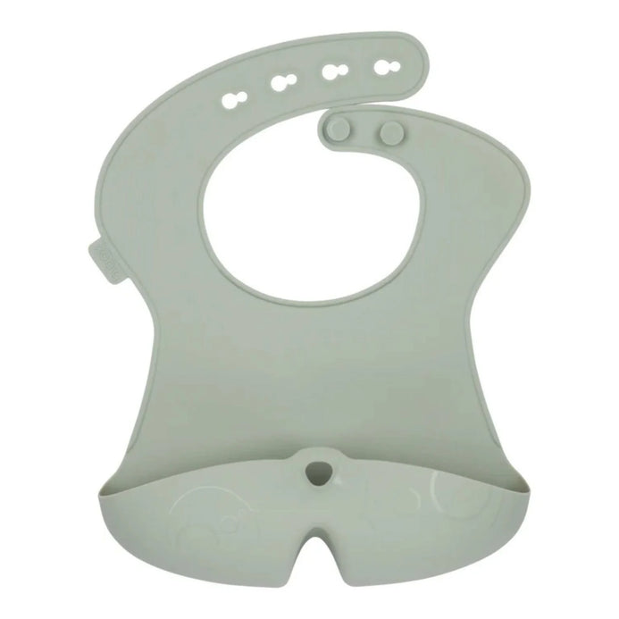 What a catch! This perfect take anywhere bib features a deep 'stay open' pocket, structurally designed to help catch more food and liquids, keeping baby cleaner, drier and more comfortable at mealtimes. Made from non-toxic, food-grade silicone that retains a smooth non-stick surface, even when wet.