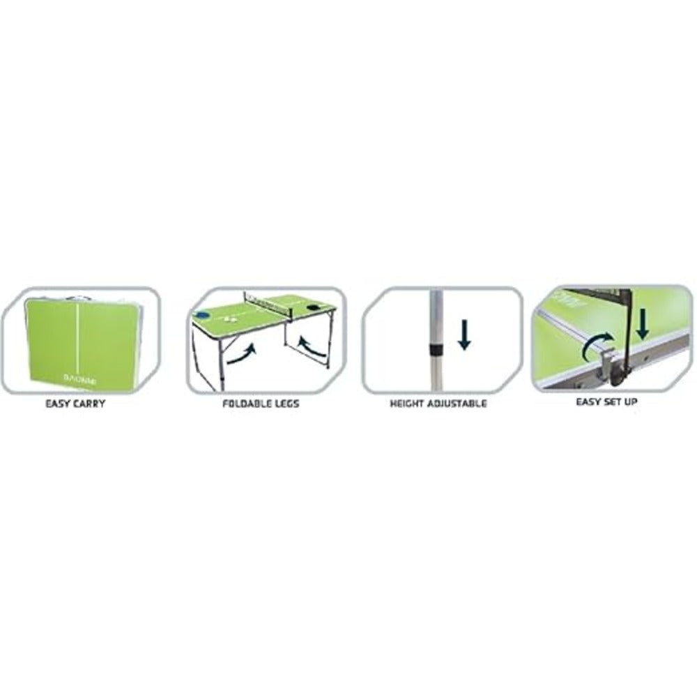 Box Includes: 1 x Table, 2 x Balls, 2 x Cues, 2 x Paddles