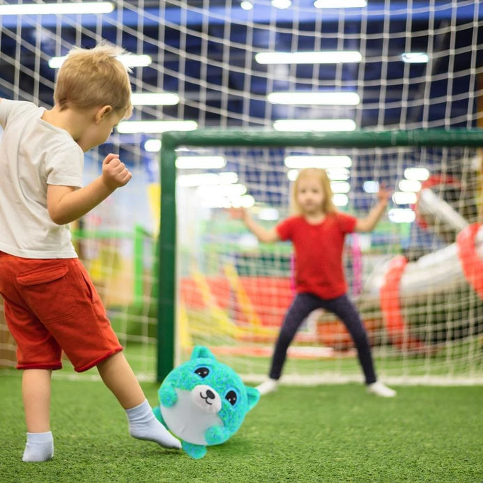 Scoobies' new Fuzz Ball is perfect for playing indoors or outdoors! With a soft plush outside and a bouncy ball inside, it's ideal for throwing, catching, kicking, or just cuddling!