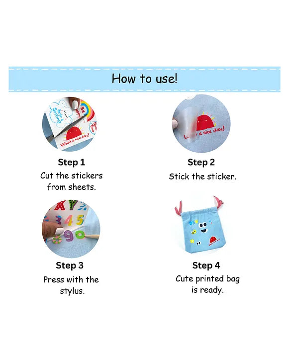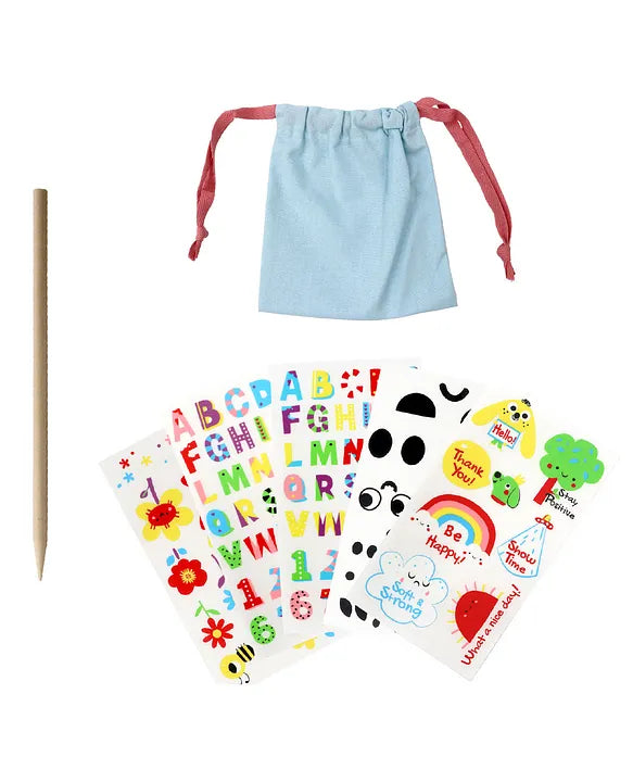 How to Use: Choose the stickers of your choice. Cut it using child-safe scissors and stick it on the pouch. Now, use the wooden stylus to rub & press it on the pouch, and finally, remove the transparent film to give a professional touch. Repeat the same process to decorate the entire pouch. Experience a fruity candy smell while sticking these stickers on the pouch.