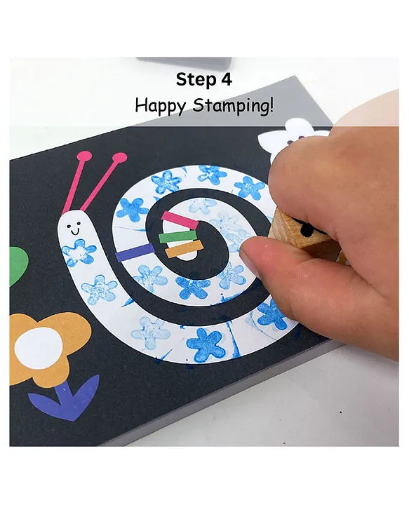 This 19-piece set includes 12 wooden stamps with different shapes, 6 colored ink pads (black, yellow, orange, red, blue & green), and a design booklet with 15 fun patterns and blank pages for free play. The wooden stamps are smooth and safe for little hands, while the ink pads are non-toxic and skin-friendly, ensuring a safe and enjoyable experience.