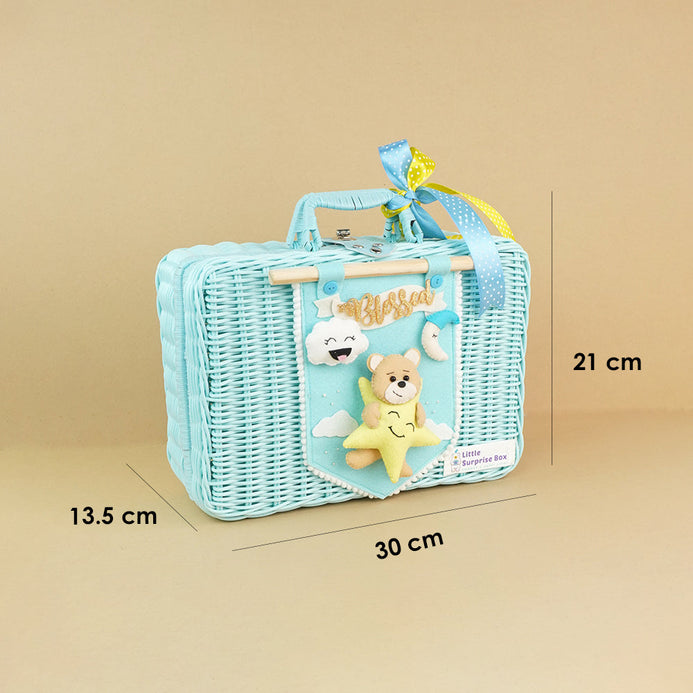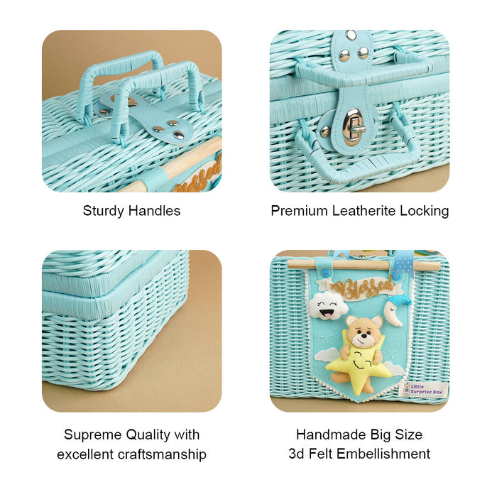 1. Handmade Cane Basket: This majestic Chic, beautiful and attractive handmade cane basket with detailed handmade felt work on it makes this piece an absolute stunner and a head turner. This trendy handmade Cane Basket from Little Surprise Box is perfect for anyone who loves Keepsakes or wants to travel with something cute and trendy. This piece ensures you travel with Style and ease and still carry a lot of cuteness and is not like a boring storage box.