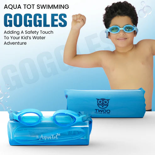 We make your child's underwater adventures smooth and worry-free with AquaTot- the no-fuss swimming goggles, featuring a cloth strap that reduces the pressure on head and also keeps their wet hair tangle-free!