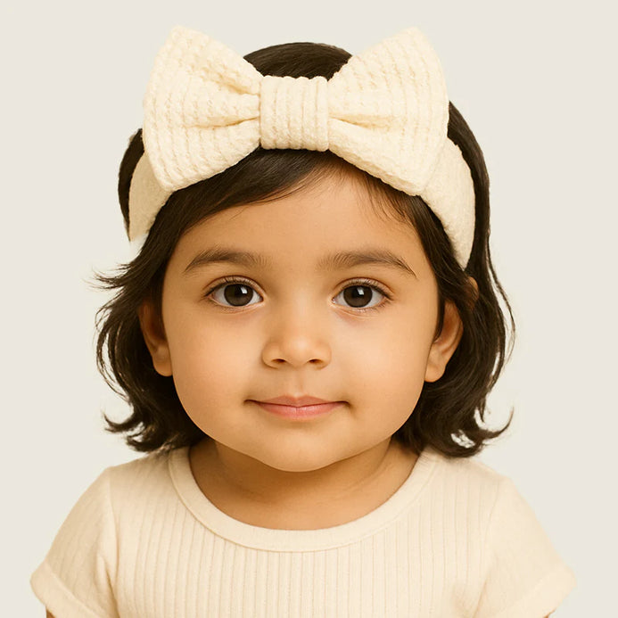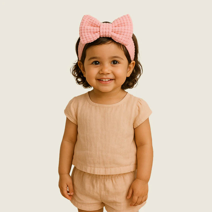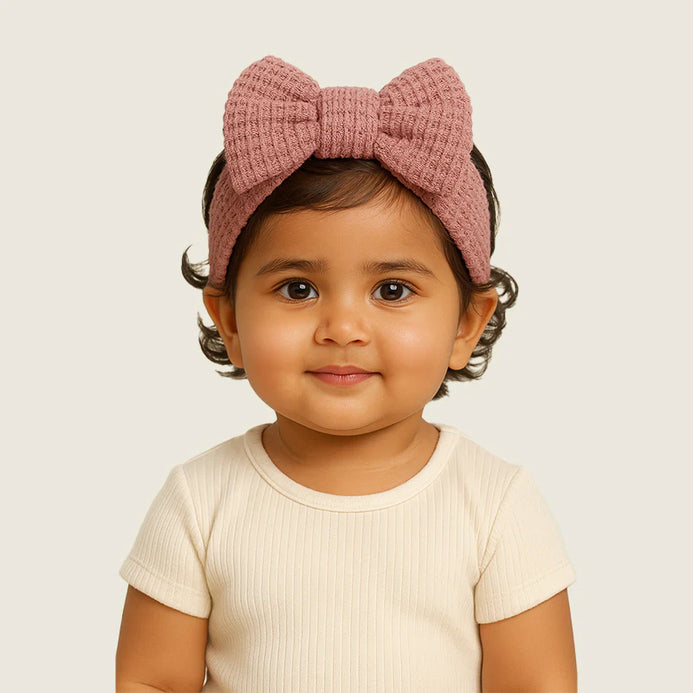 Add a touch of charm to your little one's look with our newly launched Big Bow hairbands, available in five amazing colors. Crafted from a blend of cotton, these hairbands feature a super soft waffle-like texture that's gentle on your baby's delicate head.