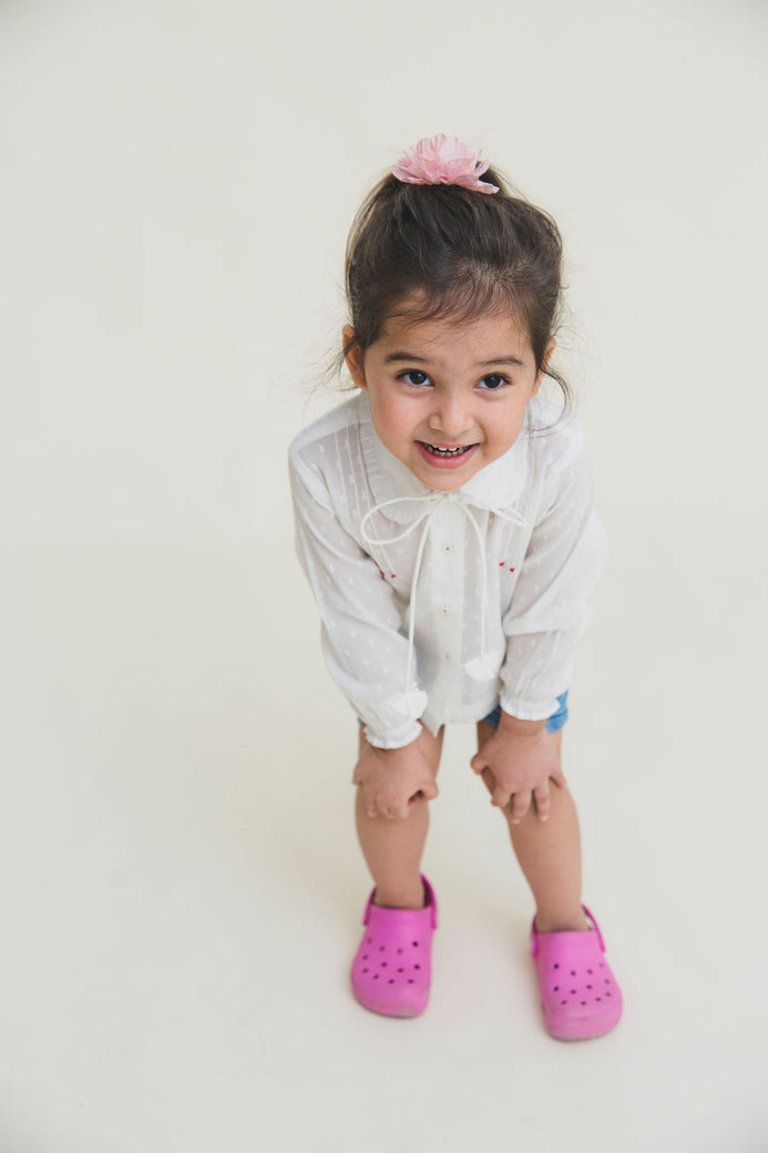 Dobby Cotton Detailed Peter Pan Collar Blouse With Beads.