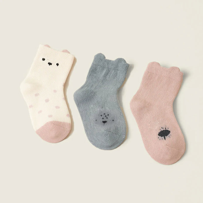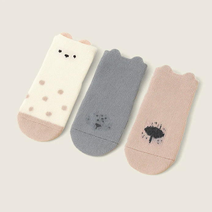 • Pack of 3 pairs only – Cream Bear Polka Dots, Grey Paw Prints, and Blush Pink