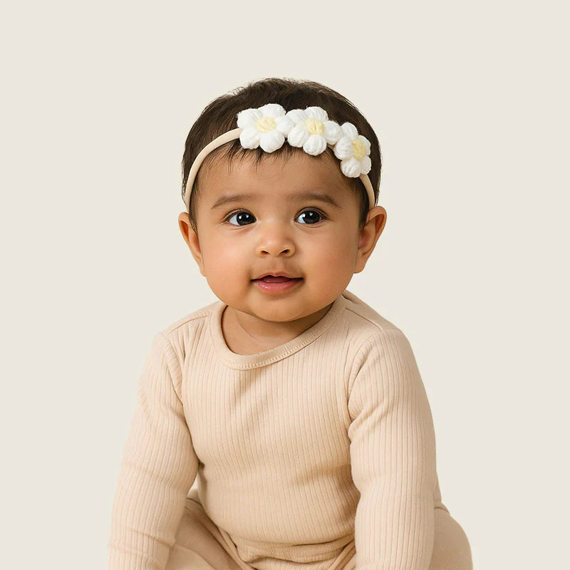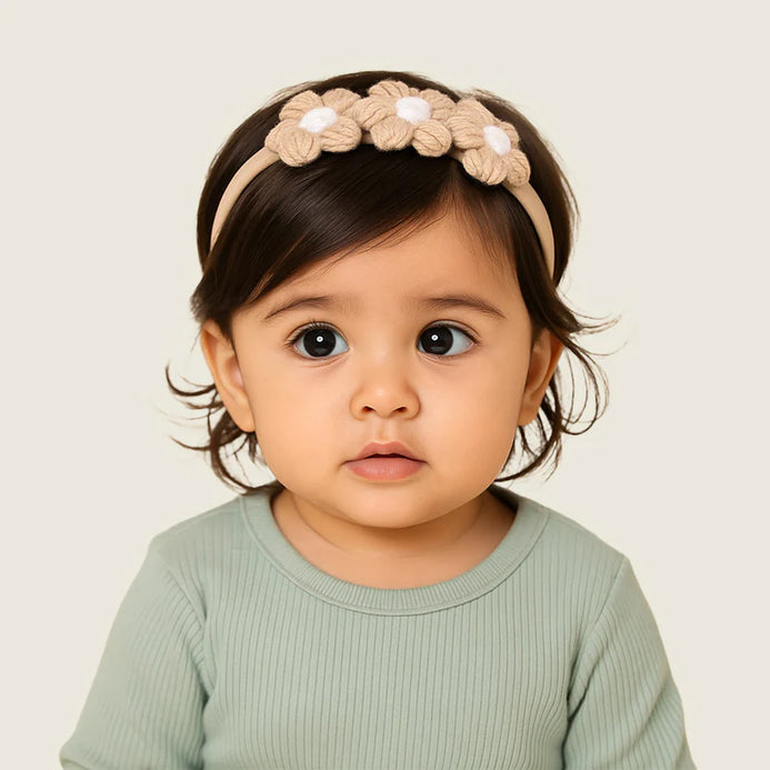 Available in three beautiful colors, these hairbands are crafted with love and care, adding a charming touch to any outfit. Experience the blend of craftsmanship and comfort with our handwoven knit hairbands, designed to keep your baby comfortable and adorable.