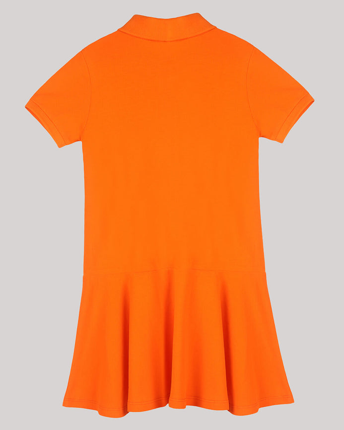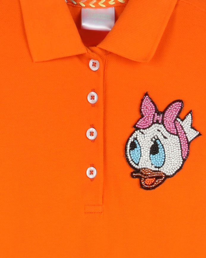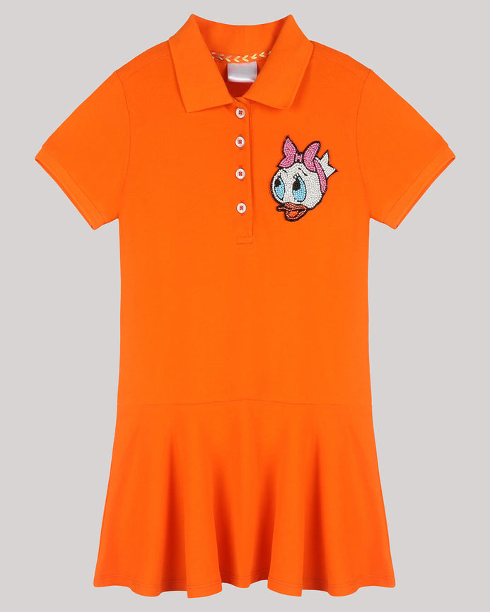 Orange Polo Dress With Drop Waist Silhouette And Daisy Duck Motif