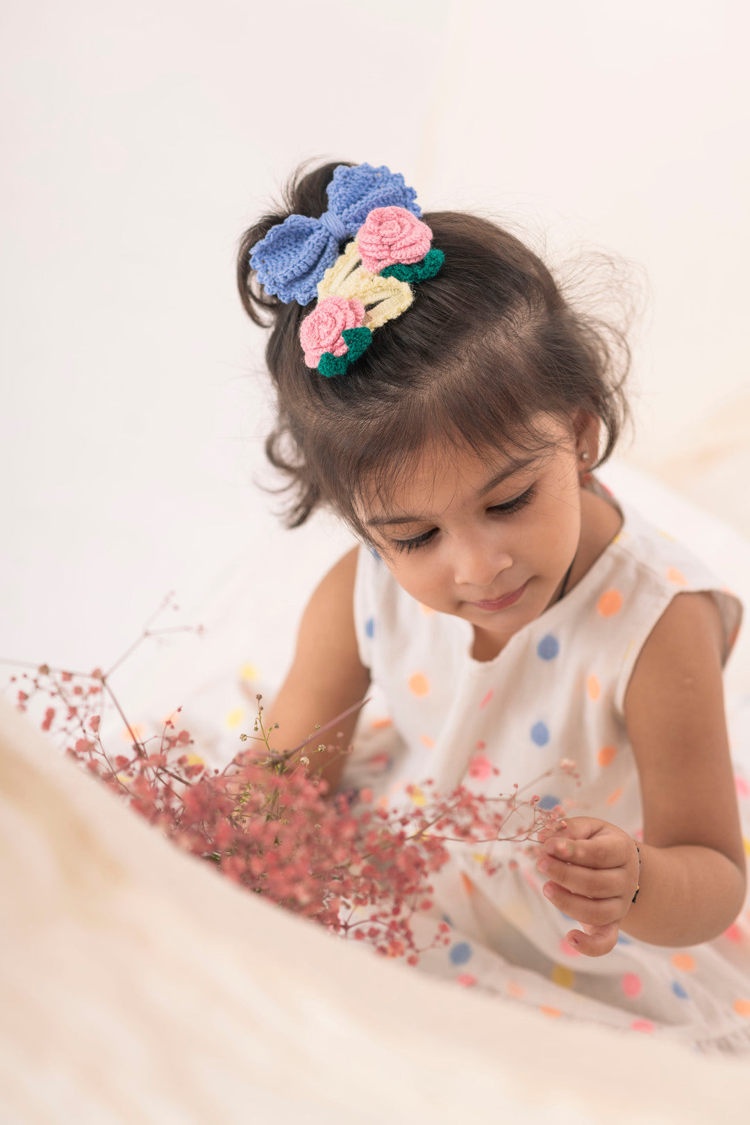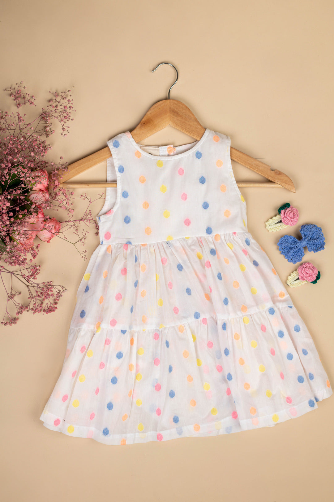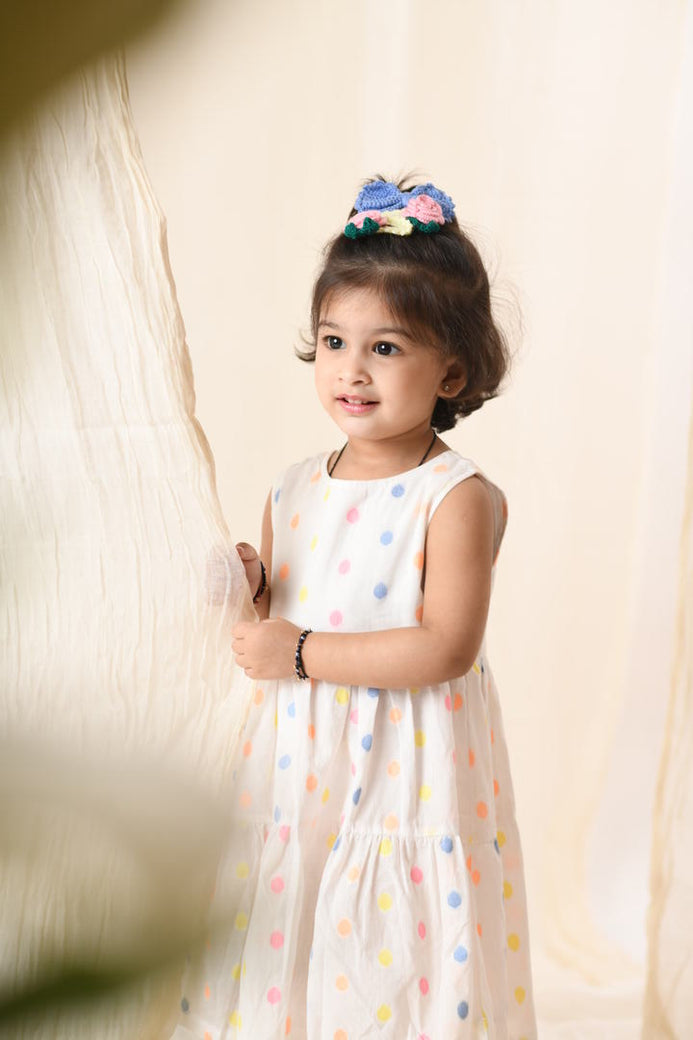 Organic Cotton Polka Dot Dress & Rose Clip, Bow Gift Set