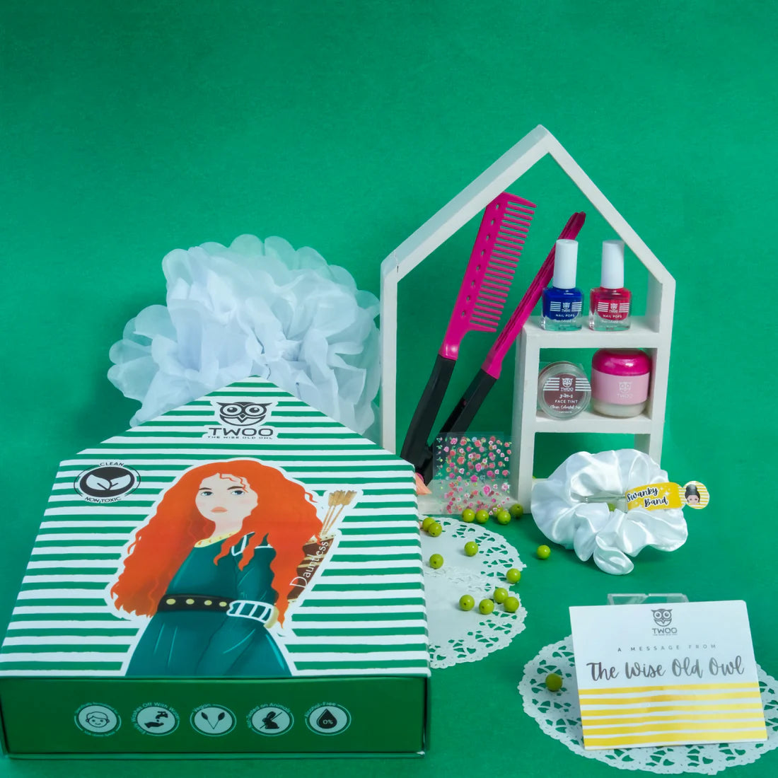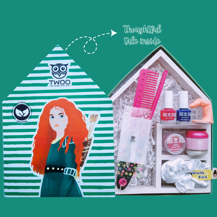 Hey, moms! The Dauntless Wise Box has everything your brave child needs to conquer all fights and battles. This 8-in-1 box not only includes amazing kid-friendly products but also features a special message for you and your child from The Wise Old Owl. The story will boost your child's courage, while the products provide all the essentials for a bold and fearless look.