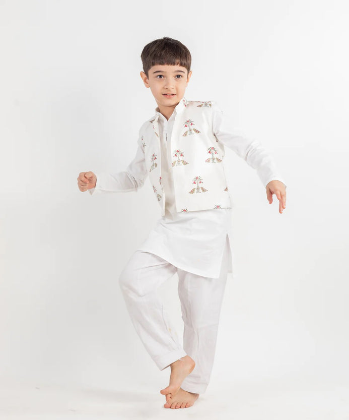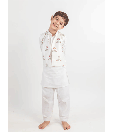 White Bird Kurta, Jacket And Pyjama Set-3 Pc