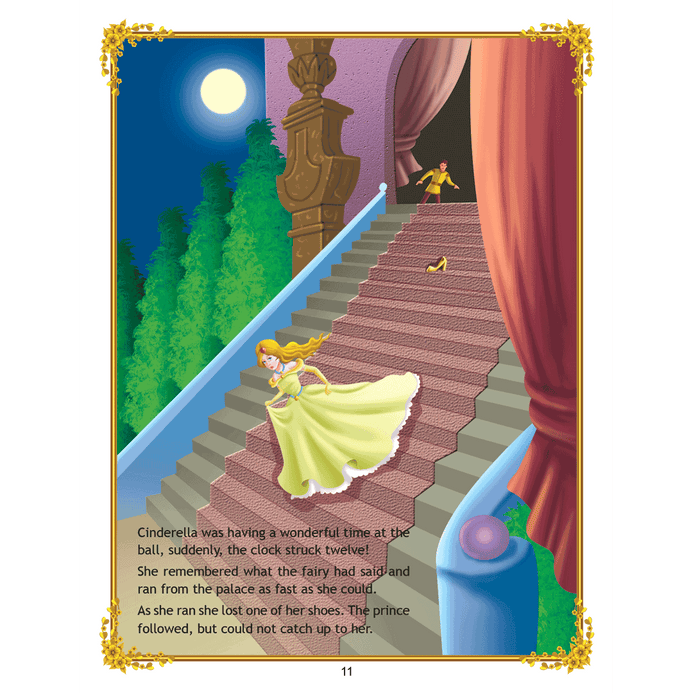Cinderella, an innocent beautiful girl blessed with a fairy godmother who helps her attend the prince’s ball finds her love and lives happily. ‘Uncle Moon’s Fairy Tales – Cinderella’ is well-loved by all. Adorned with charming illustrations, retold in easy language, this is a beautiful book to treasure. • 16 pages • Ideal for age-group 2-6 years • Amazing illustrations • Colourful cover • Inculcates reading habit Presented through captivating illustrations, this is an excellent version of a famous fairly tale that will be loved by children everywhere. Easy-to-understand text ensures that kids enjoy reading it and improve their language skills as well.