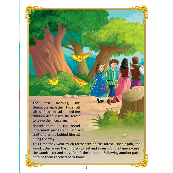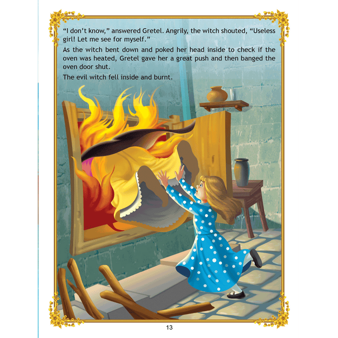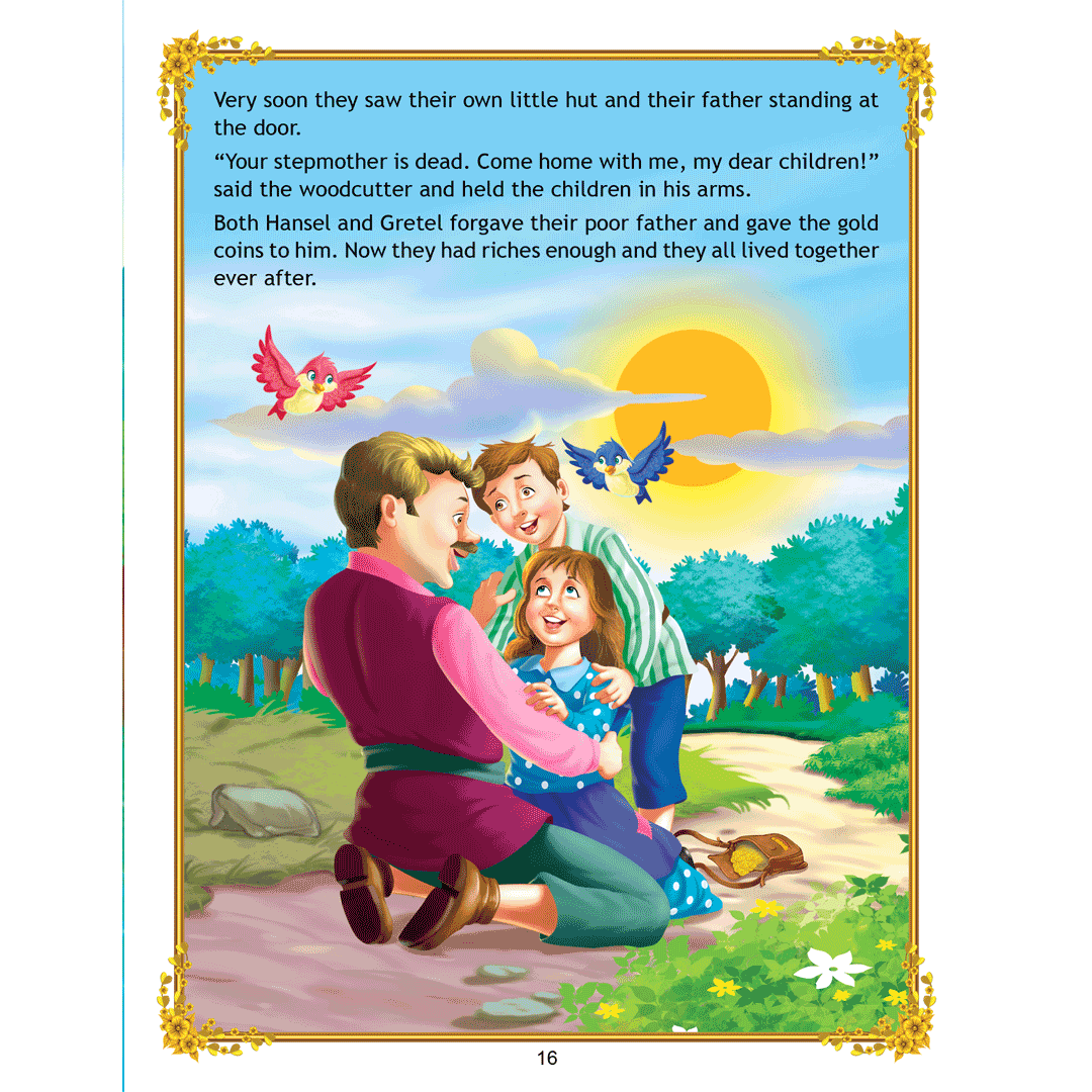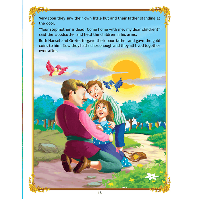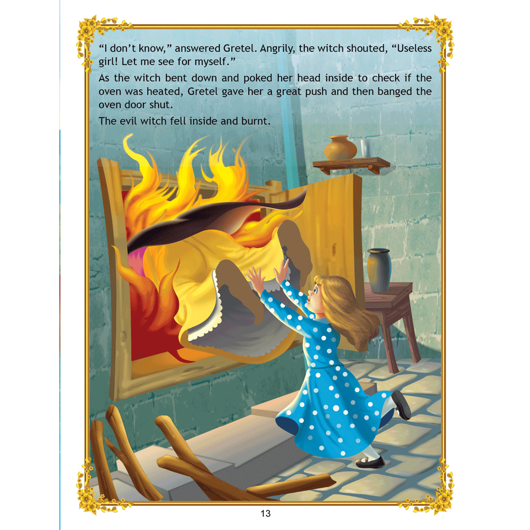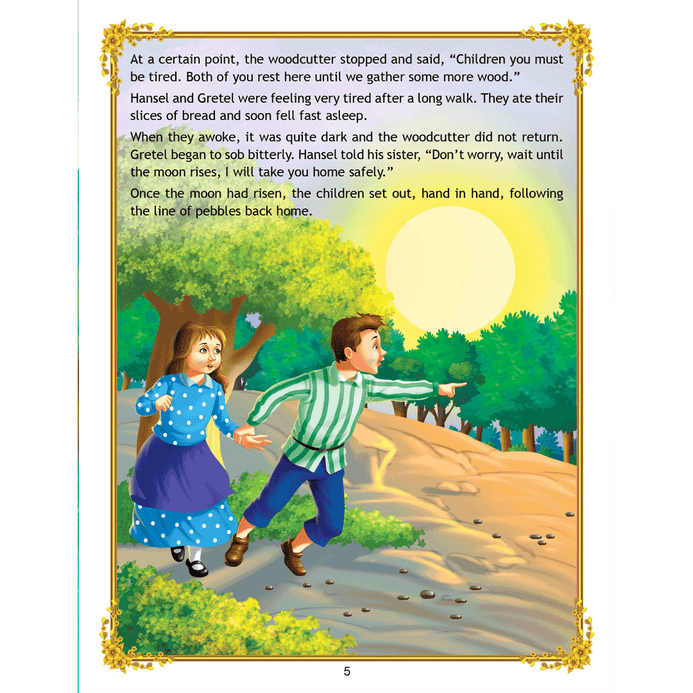 ‘Hansel and Gretel’ is a story of a brave brother and sister who love and care for each other. Left alone in a forest, they fall into the hands of a witch who lives in a house made of gingerbread, cake, and candies. Both kids not only with their wit cleverly free themselves but also return home rich and live happily ever after. Adorned with charming illustrations, retold in easy language, this is a beautiful book to treasure. • 16 pages • Ideal for age-group 2-6 years • Amazing illustrations • Colourful cover • Inculcates reading habit This storybook is sure to encourage a lifetime love of reading. Filled with humour and adventure it will enchant young readers and listeners. Easy-to-understand text ensures that kids enjoy reading it and improve their language skills as well.