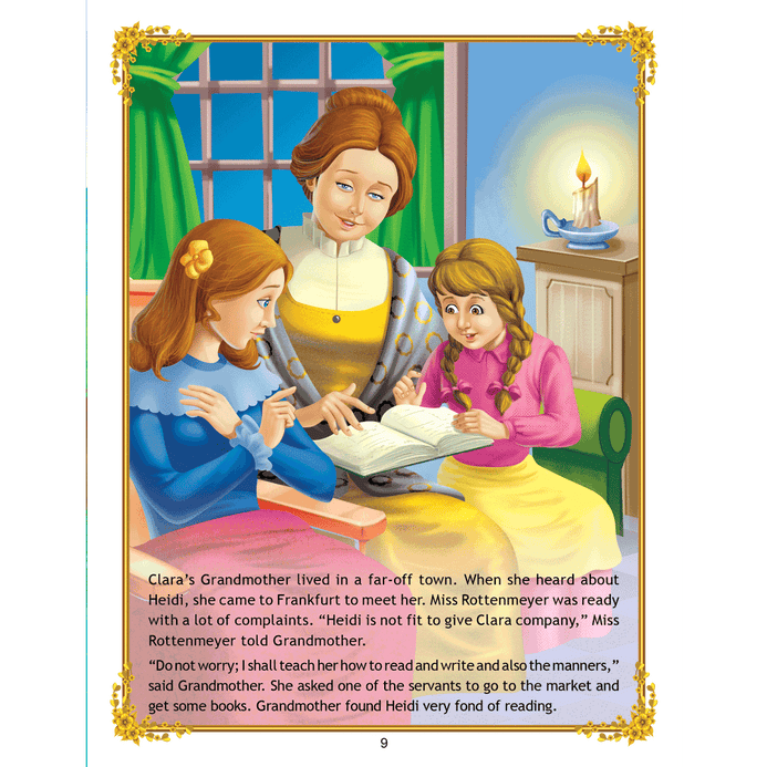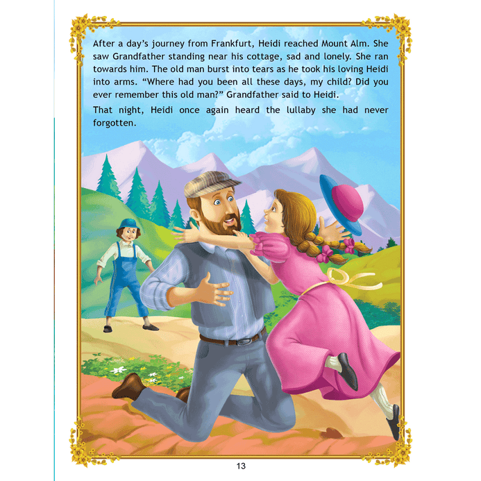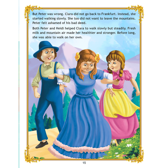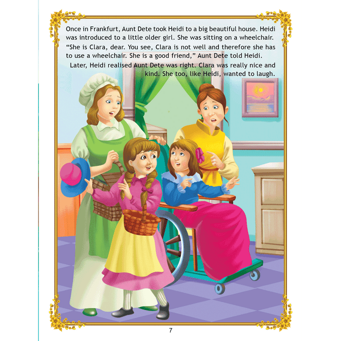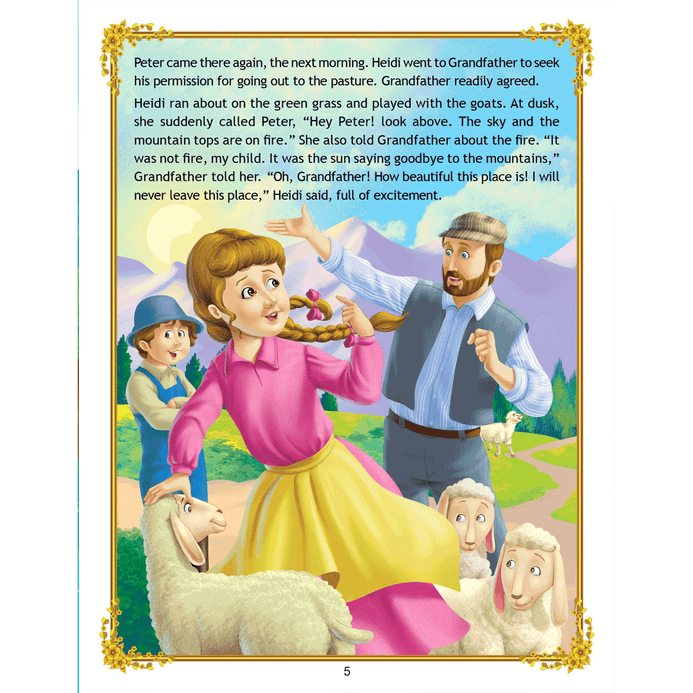 ‘Uncle Moon’s Fairy Tales – Heidi’ is a story of a kind little girl who lives with her grandfather whom she charms with her innocence and then she takes care of a young sick girl of her own age. This classic story is ideal for anyone who wants to read great work. • 32 pages • Ideal for age-group 2-6 years • Amazing illustrations • Colourful cover • Inculcates reading habit Presented through captivating illustrations, this is an excellent version of a famous fairy tale that will be loved by children everywhere. Easy-to-understand text ensures that kids enjoy reading it and improve their language skills as well.