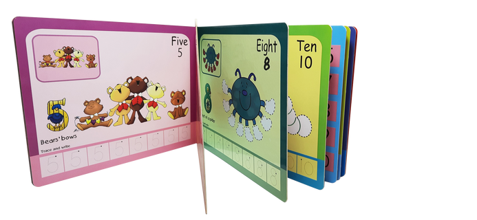 A glossy and bright two-in-one board book for recognition of letters and tracing. The book has clear pictures for recognition and big capital letters for tracing.