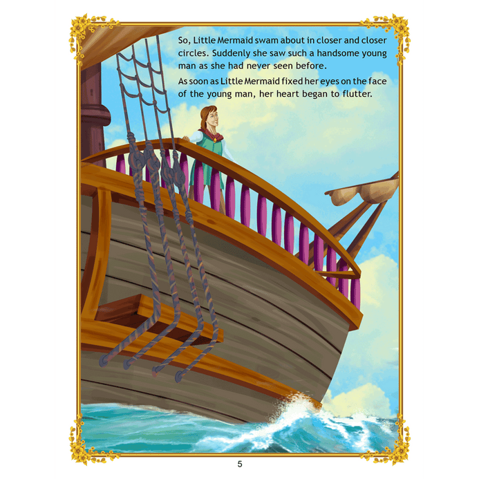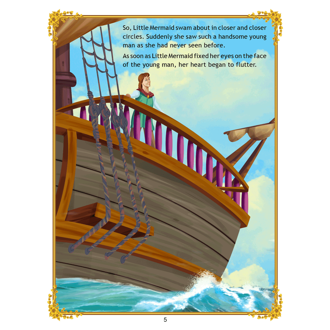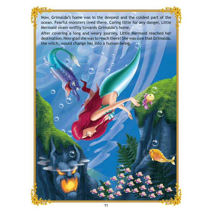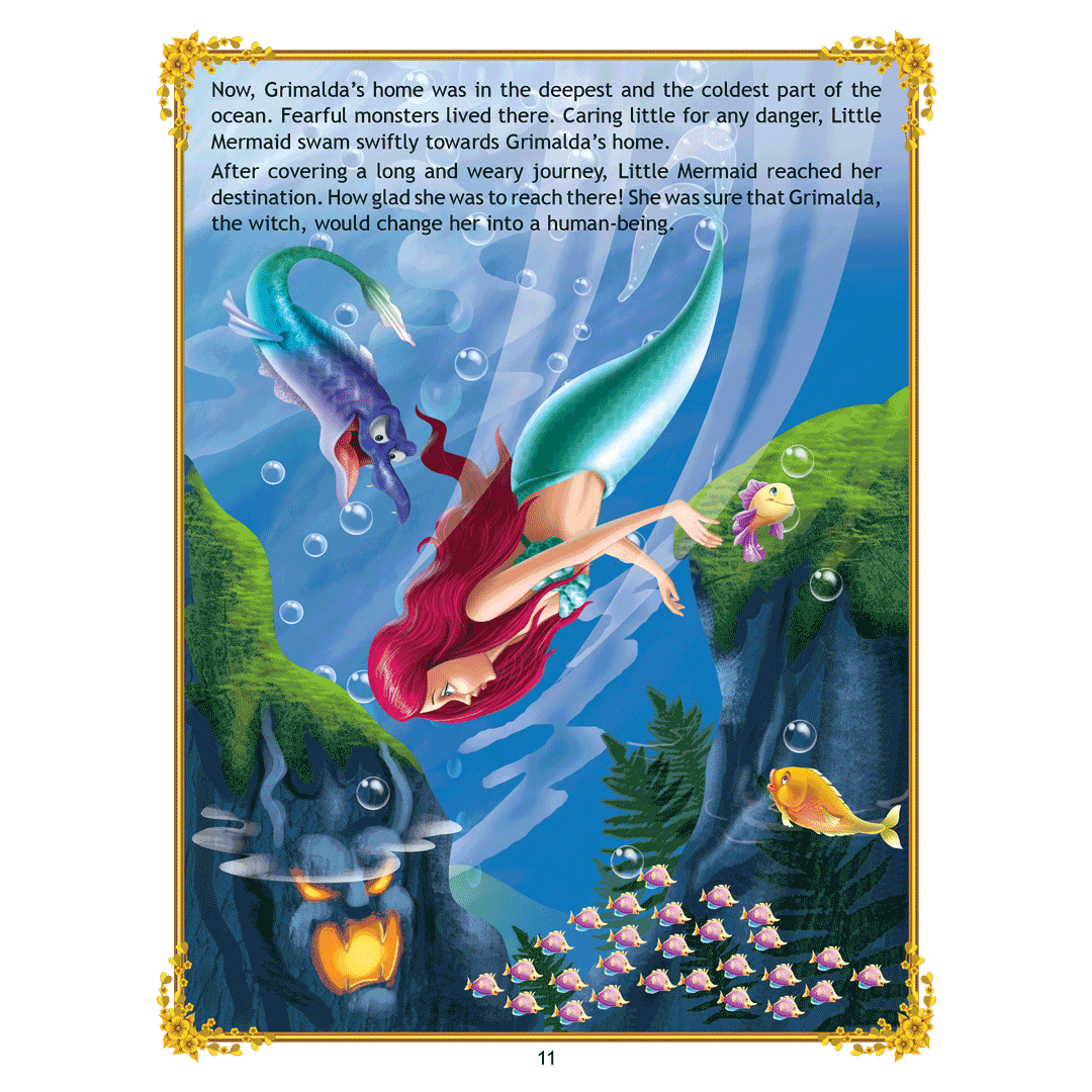 The Little Mermaid, a fairy tale of a mermaid willing to give up her life in the sea and immortality in exchange for a human soul. Children will love finding out what happens when this Sea Princess falls in love with a human! • Ideal for ages 2-6 • 32 pages • Amazing artwork • Colourful presentation • Retold in simple words supported by beautiful illustrations, this fairy tale is bound to capture the attention of little readers. This storybook is sure to become a favourite of young readers.