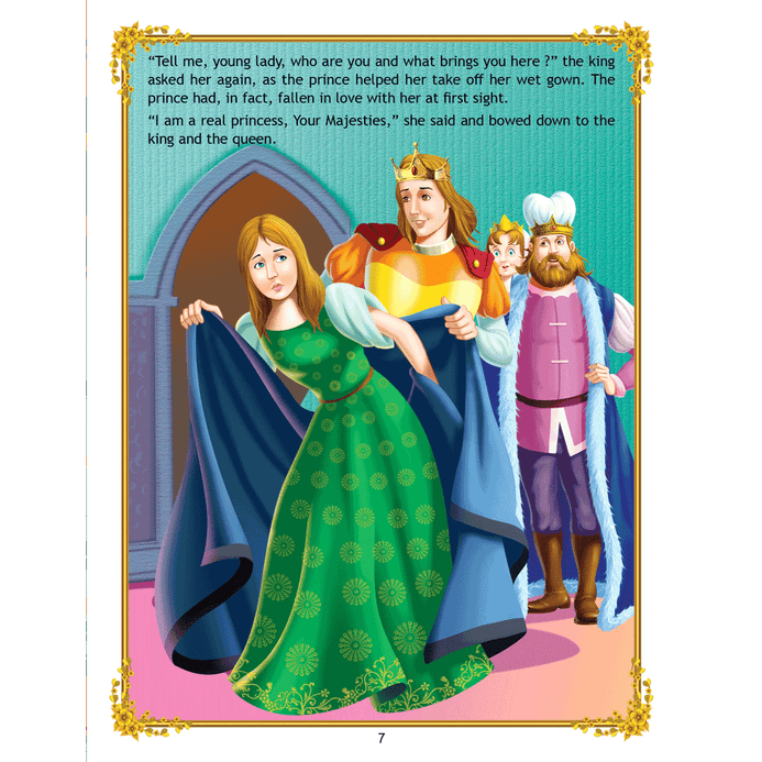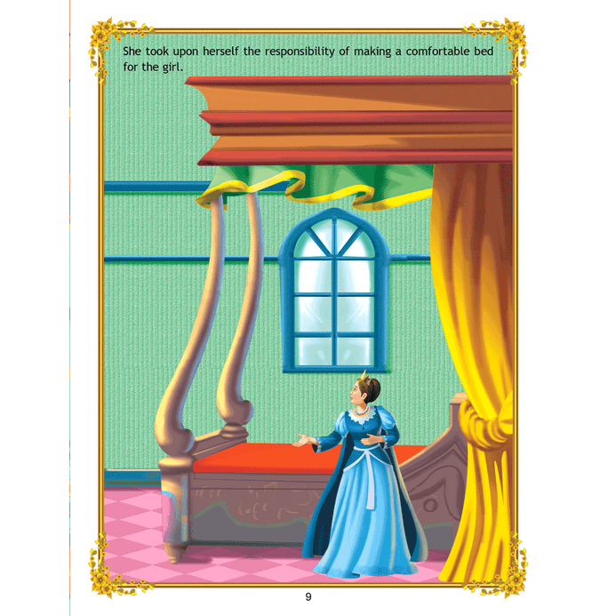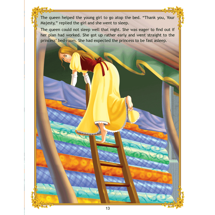 ‘The Princess and the Pea’ is a story of a beautiful princess who in order to prove her royal status goes through an unusual test. This light-hearted fairy tale is refreshing and whimsical. It will absolutely be loved by children. • 16 pages • Ideal for age-group 2-6 years • Amazing illustrations • Colourful cover • Inculcates reading habit This classic retold is sure to capture all readers’ interest, page after page, as they take their imagination on a magical journey. Easy-to-understand text ensures that kids enjoy reading it and improve their language skills as well.