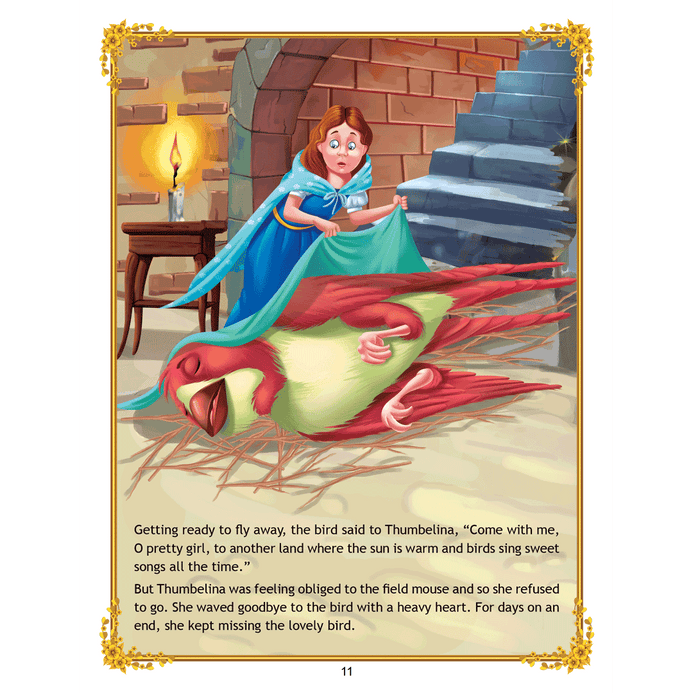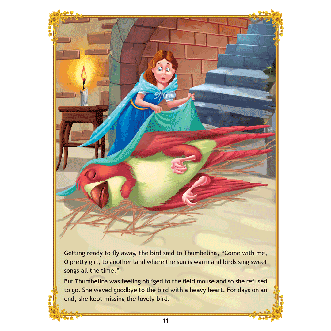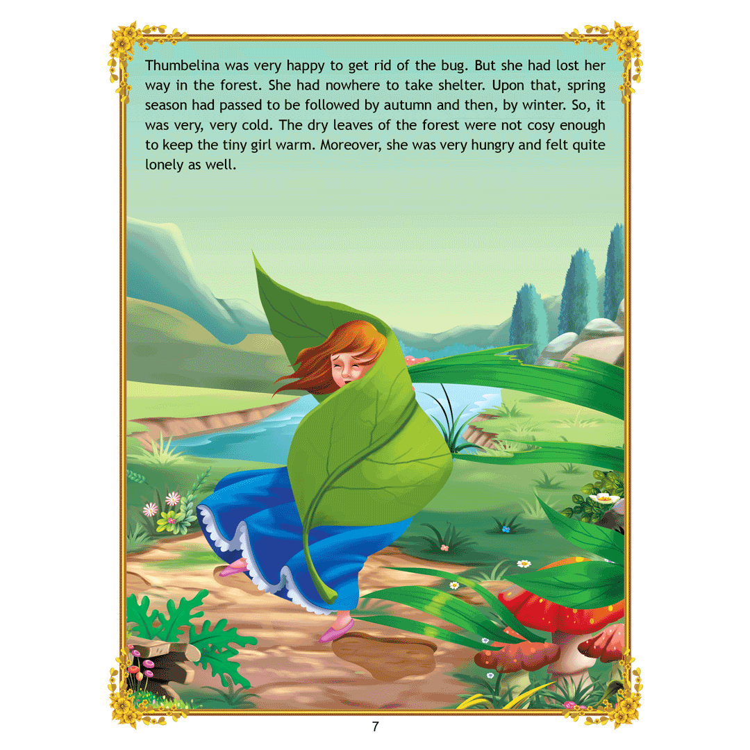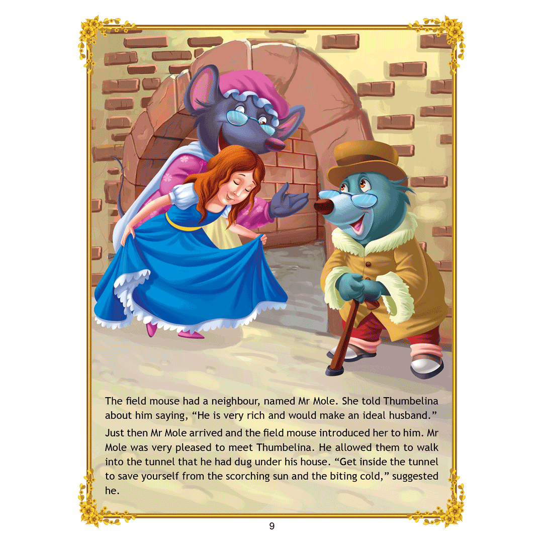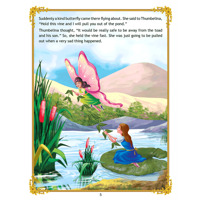 ‘Thumbelina’ is a story of a cute tiny thumb-sized girl and her adventures with toads and moles until she meets a flower-fairy prince just her size. Adorned with charming illustrations, retold in easy language, this is a beautiful book to treasure. • 16 pages • Ideal for age-group 2-6 years • Amazing illustrations • Colourful cover • Inculcates reading habit This classic retold tale is sure to become a favourite of all readers. Filled with humour and adventure it will enchant young readers and listeners. Easy-to-understand text ensures that kids enjoy reading it and improve their language skills as well.