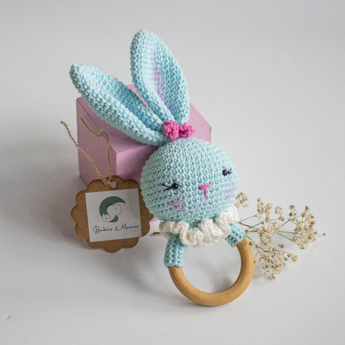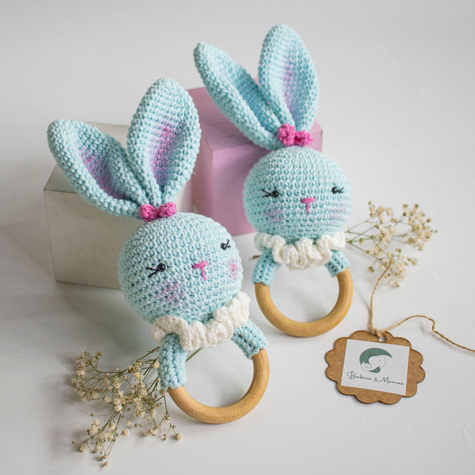 These handmade crochet rattles are soft and colourful with smooth handle of natural wood. Our wooden baby rattles are made of natural wood, environment friendly, safe and burr-free. These rattles help in developing fine motor skills, stimulating sensory development, hearing and tactile senses and generate attention.