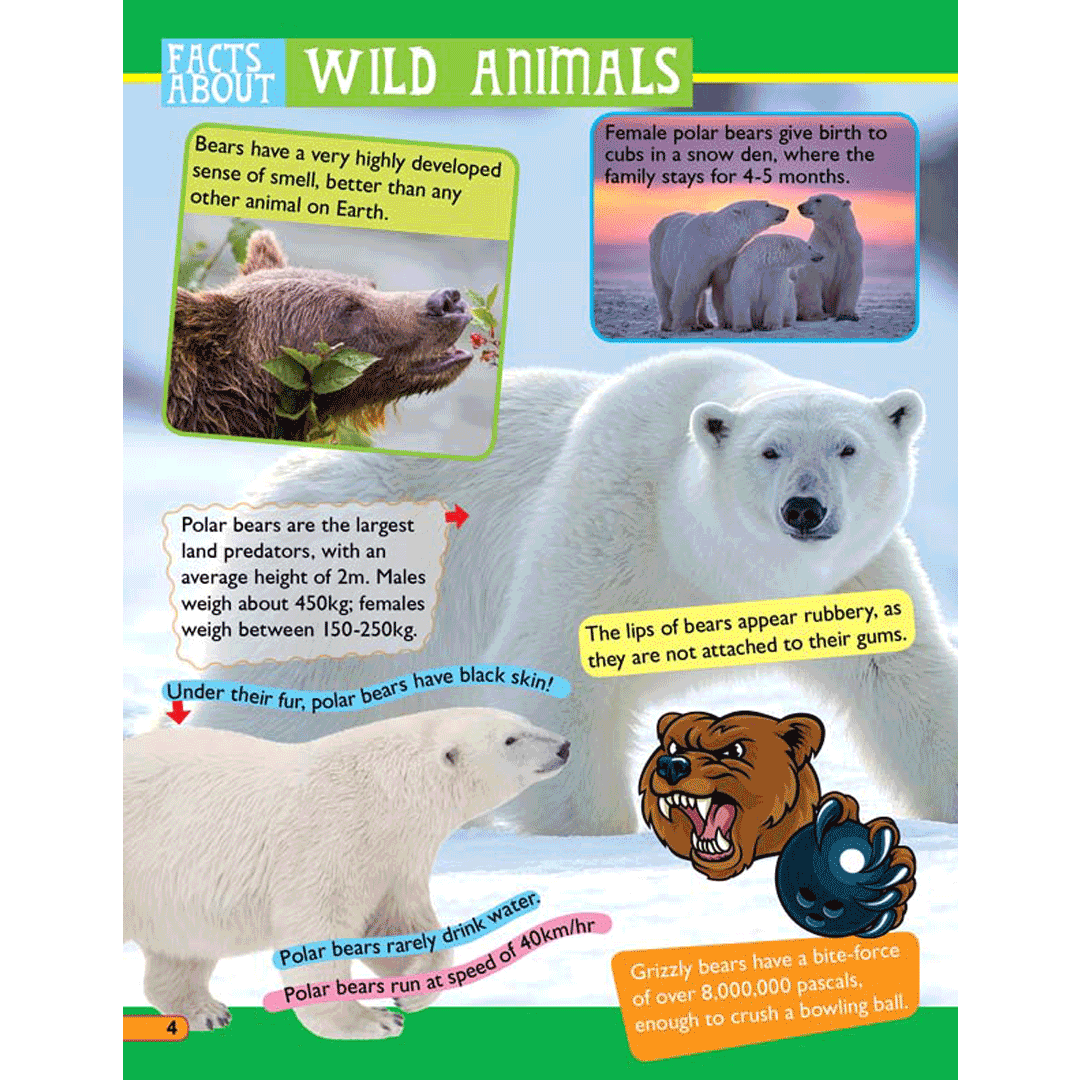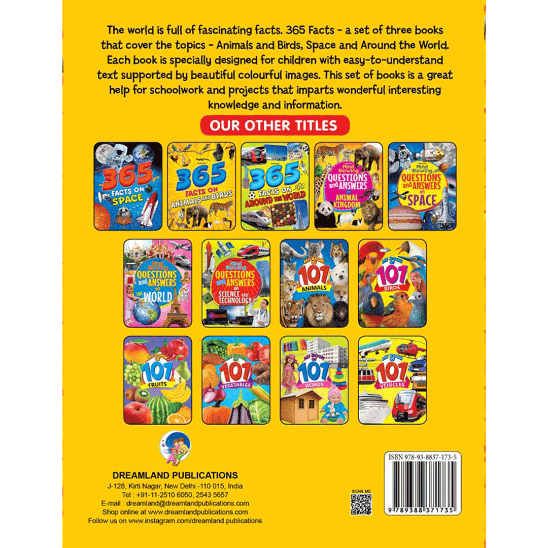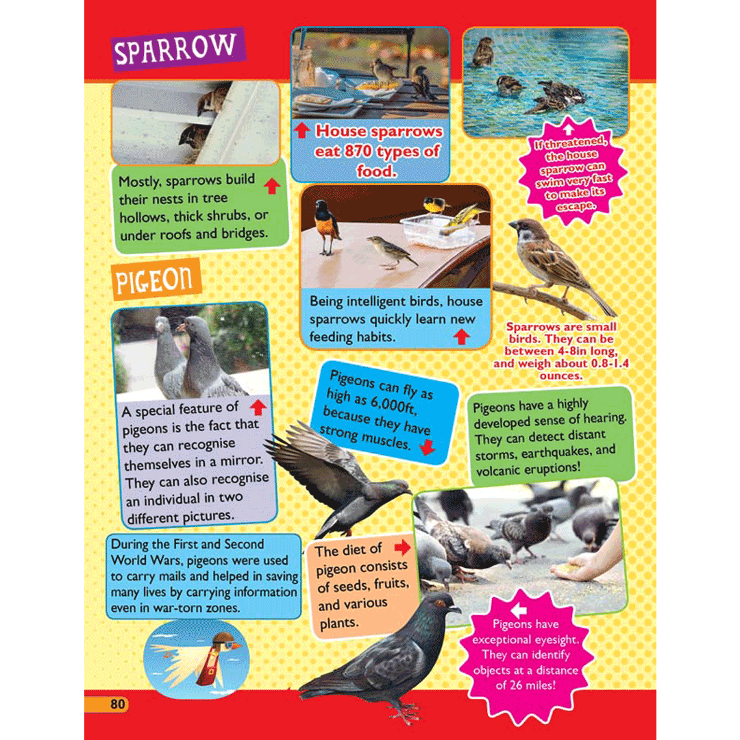 The world is a lot more interesting and filled with fascinating facts than you think. ‘365 Interesting Facts on Animals and Birds’ is specially designed for children to help them learn everything they need to know about this wonderful world. • Useful for ages 7-15 • Attractive cover • 80 pages • Amazing illustrations • A wonderful collection Learn fantastic facts about magnificent mammals, creepy crawlies, amazing amphibians, feathered friends, and more with this engaging book. Each page of this book is accompanied by beautiful images which let the readers connect with the book and bring content to life.