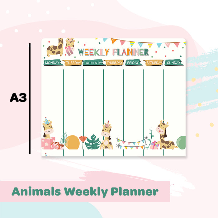 A3 Size - Animals Weekly Planner comes with Double Sided Tape or 3m Command Tape