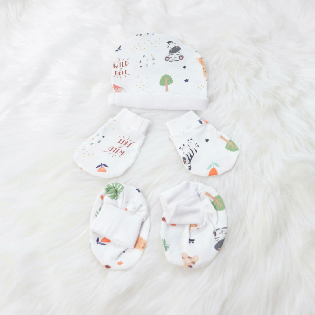 • Set of 11 : 1 Cotton Cap, 1 pair of mittens, 1 pair of booties, 1 babywear set (nappy & vest), 1 bodysuit, 1 luxury swaddle, 2 muslin wipes.