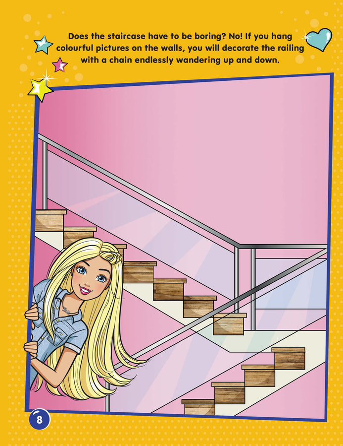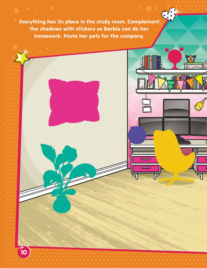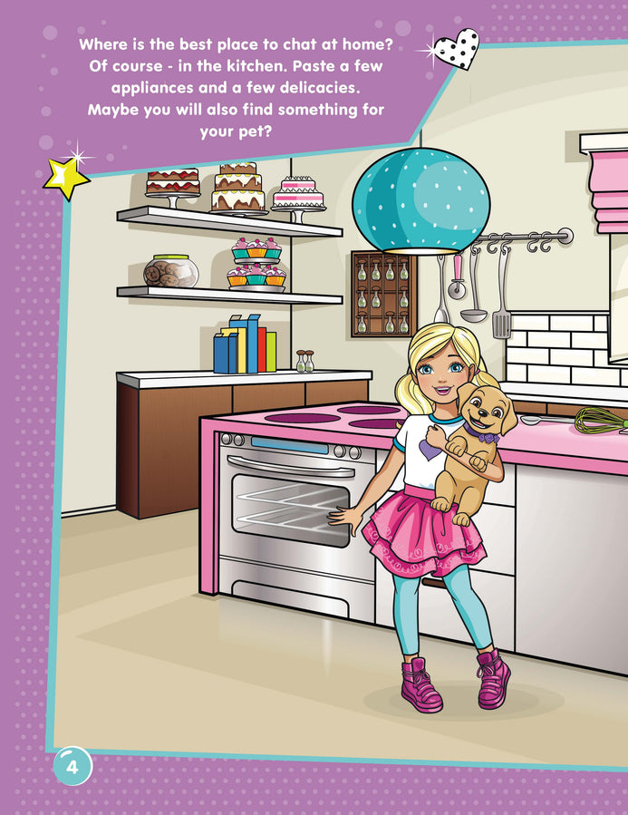 Visit Barbie's Dream House and help her arrange its cosy interiors. It's fabulously easy to decorate, design, and furnish with add-on stickers.